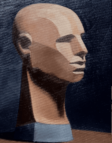 The course begins with an Asaro human head cast, specifically designed to develop an understanding of form through simplified flat planes of light and shadow. Students will closely observe how light falls across the cast, analysing distinct planes and shadow shapes before translating these observations into paint. Starting with a drawn outline, students will, over four weeks, apply shadows and planes of light using big form modelling, progressing through a first and second painting stage.
